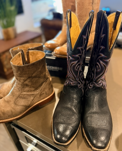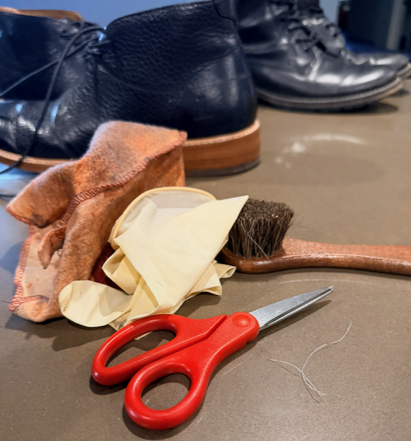 I recently watched a YouTube video and the “influencer” recommended that men should own about six pairs of shoes. I kind of snickered at that one. I’m not even going to say how many I own, but I want to talk about the benefits of taking care of them. Even modestly priced shoes can last a really long time and look really great for years, if well-cared for. I had a pair or Ferragamo’s for over 20 years and I finally had to let them go to Goodwill as the style was a getting a bit too dated. 😬 They were very handsome and comfortable shoes, but it was time to go. These days I seem to find myself buying more boots than shoes and as expensive as they are, they need special attention.